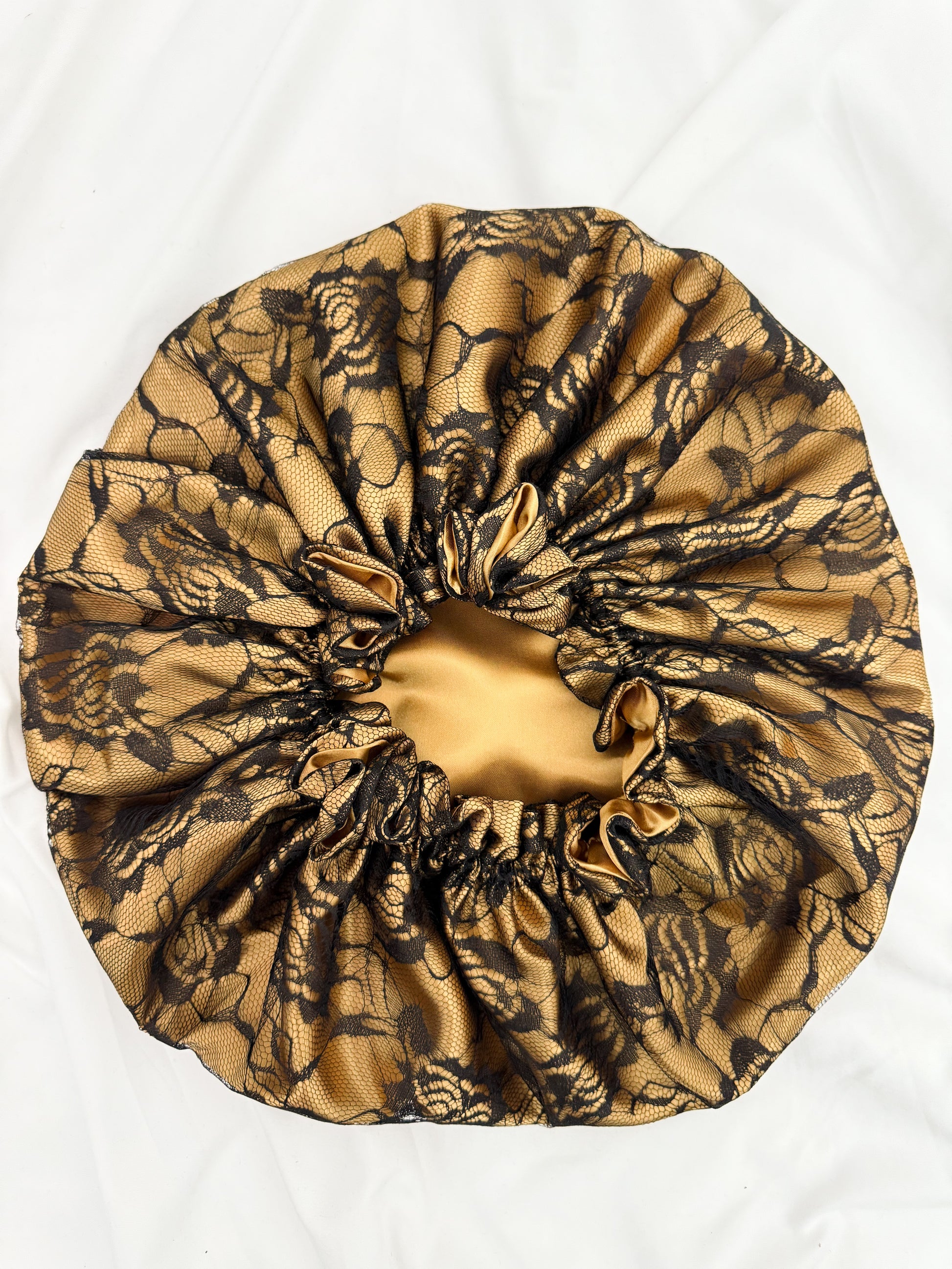 Lace Double Lined Satin Hair Bonnet - Black Gold