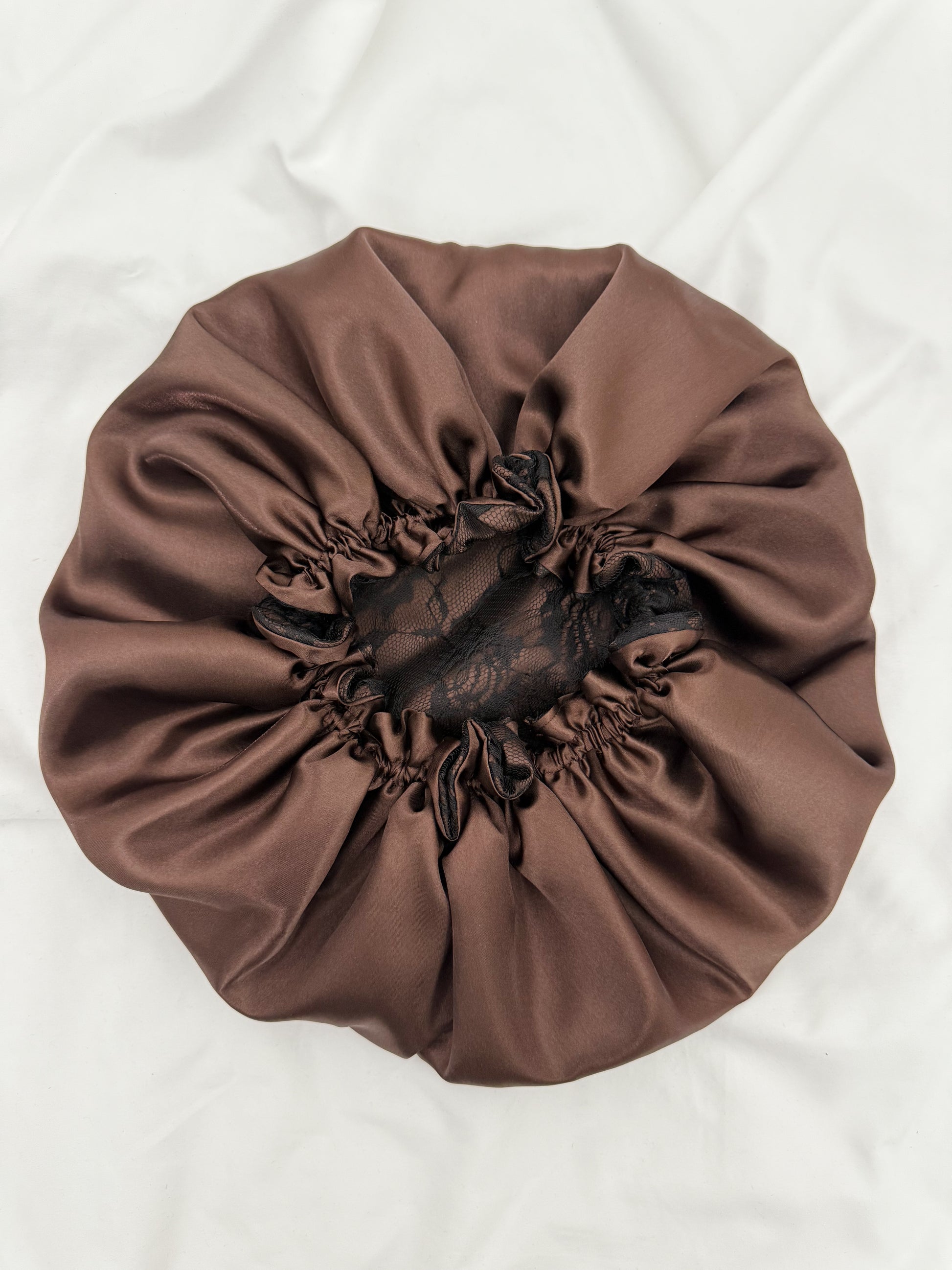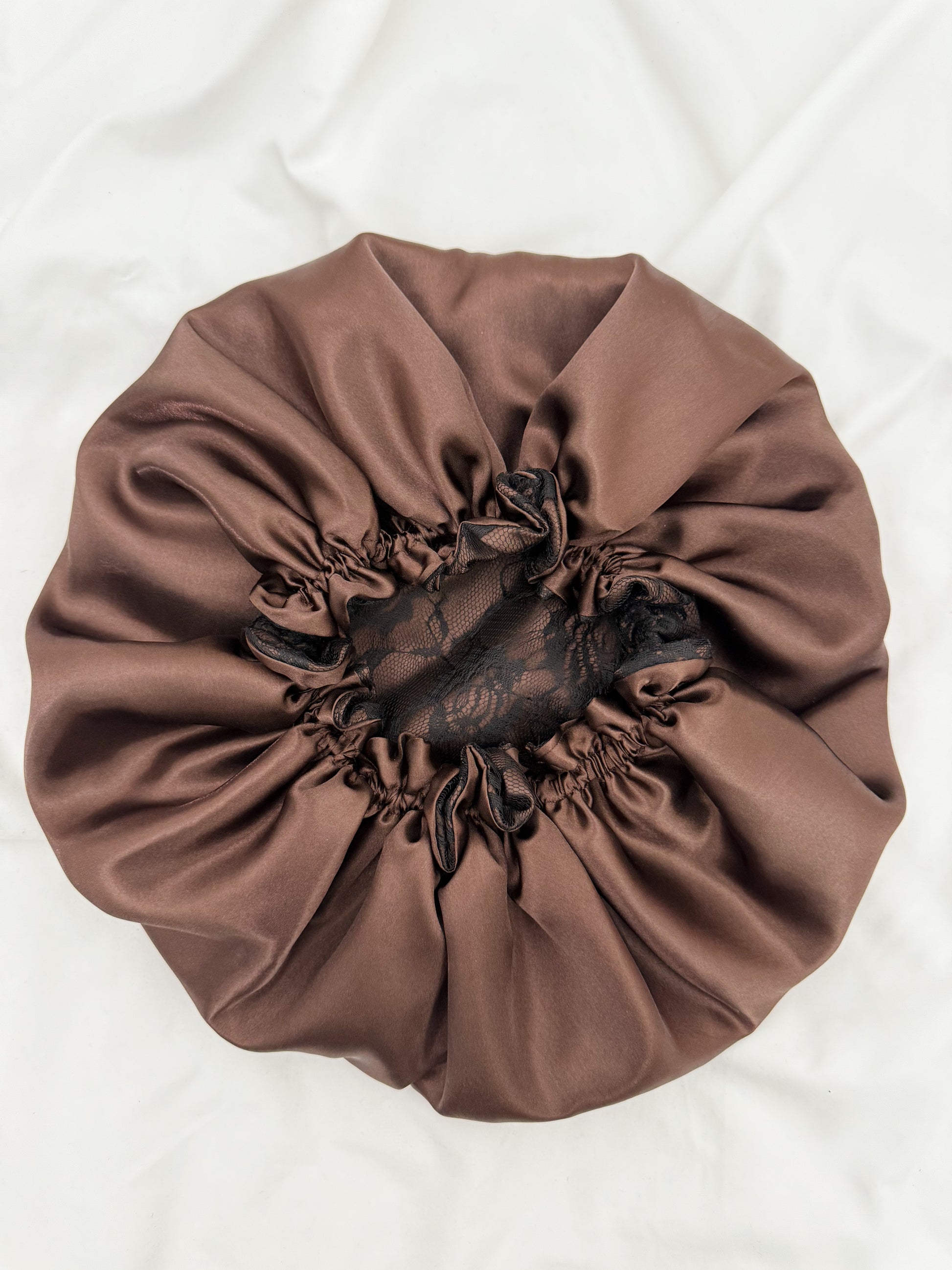 Lace Double Lined Satin Hair Bonnet - Mocha