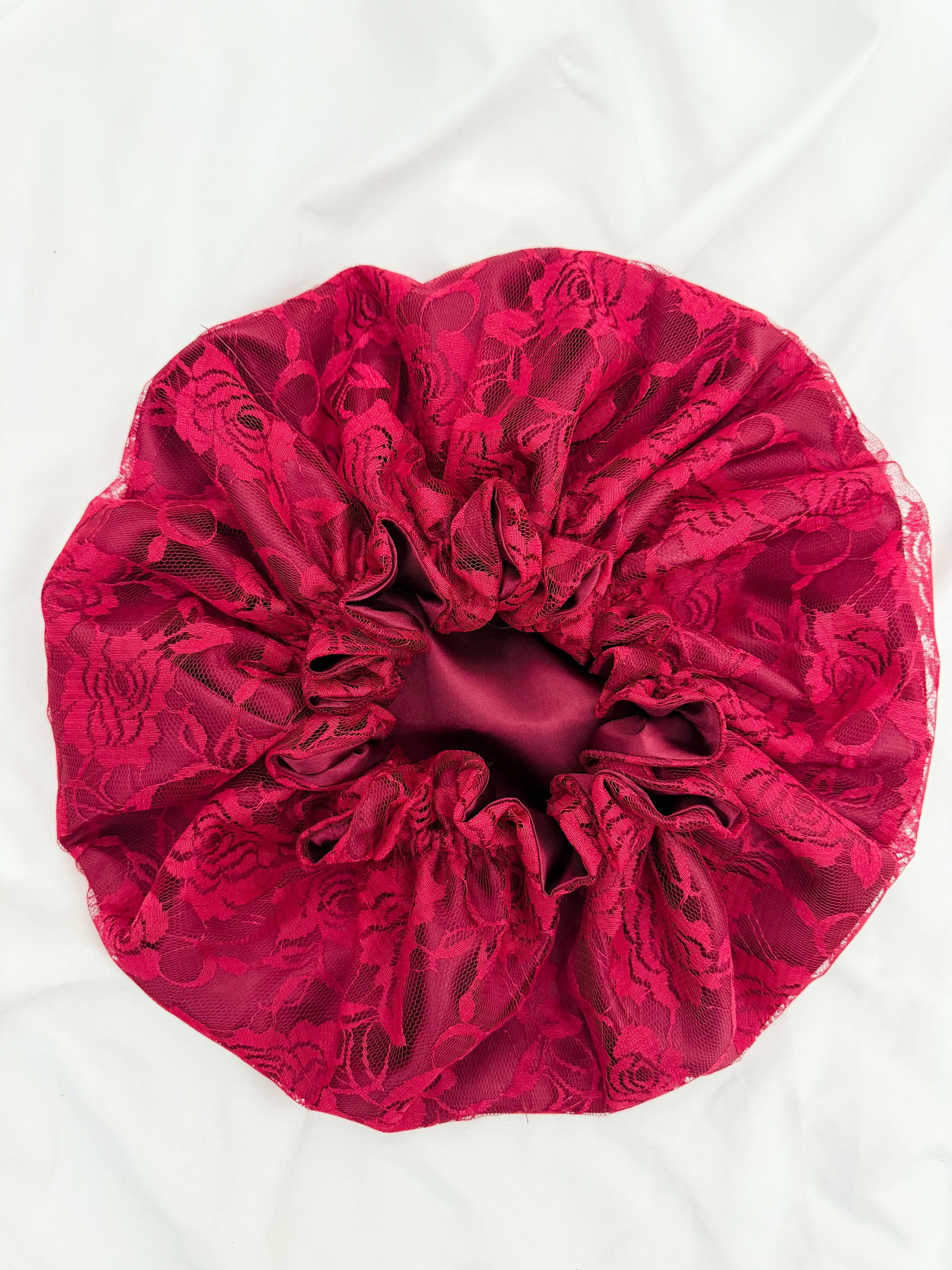 Lace Double Lined Satin Hair Bonnet - Red